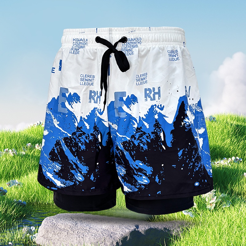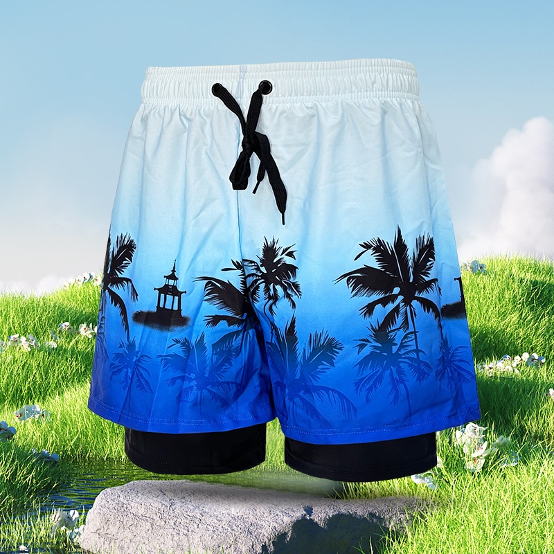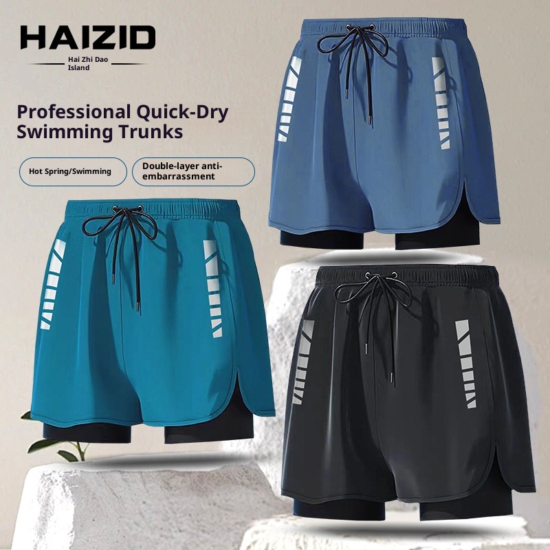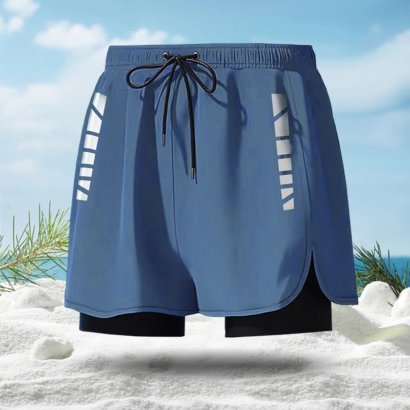 001 2024 Neue Herren-Badehose im Großhandel: Doppellagig, locker, schnelltrocknend, Anti-Peinlichkeits-Badehose, Boxershorts in großen Größen, Bademode