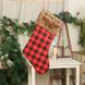 001 Qiaoding Bestseller Neue Dekoration Große Karierte Braune Plüschkante Weihnachtssocken Anhänger Szenenanordnung