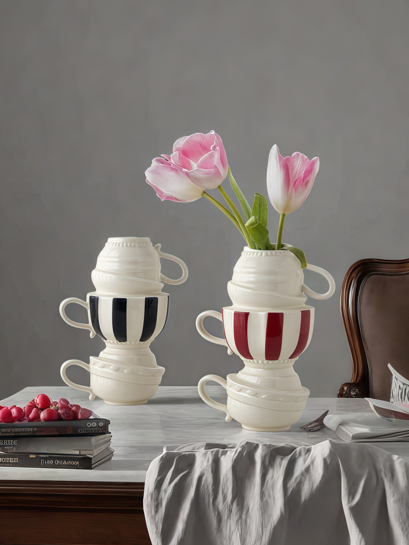 1pc cup overlapping shape ceramic vase modern European and American style design small fresh vase can be used to decorate the vase