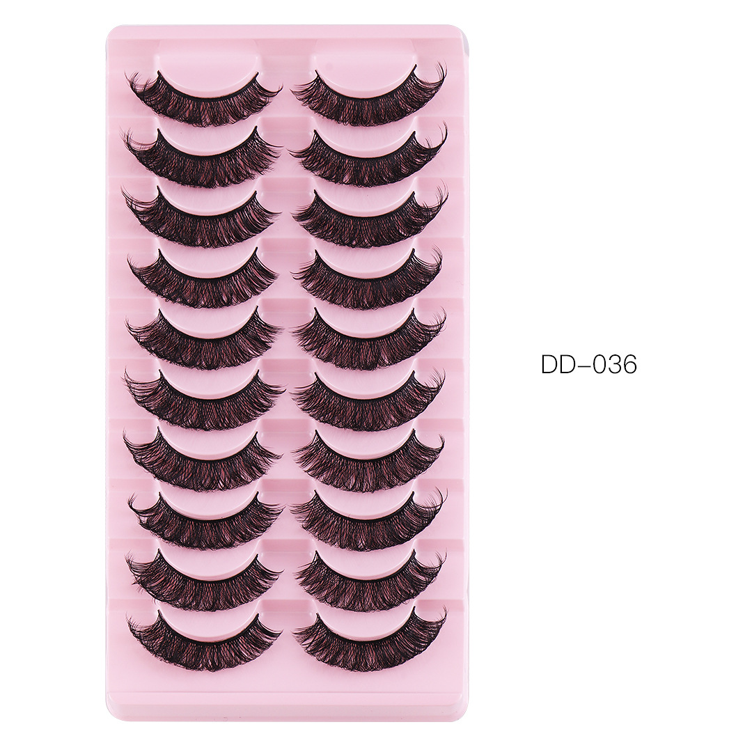 10 pairs of synthetic fiber false eyelashes, naturally grafting eyelashes in one piece, thick Russian D-shaped eyelashes