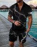 2-teiliges Herren-Set mit rotem Punktmuster, trendigem, bequemem Poloshirt mit Reißverschluss und einfarbigen Shorts mit Kordelzug am Bund