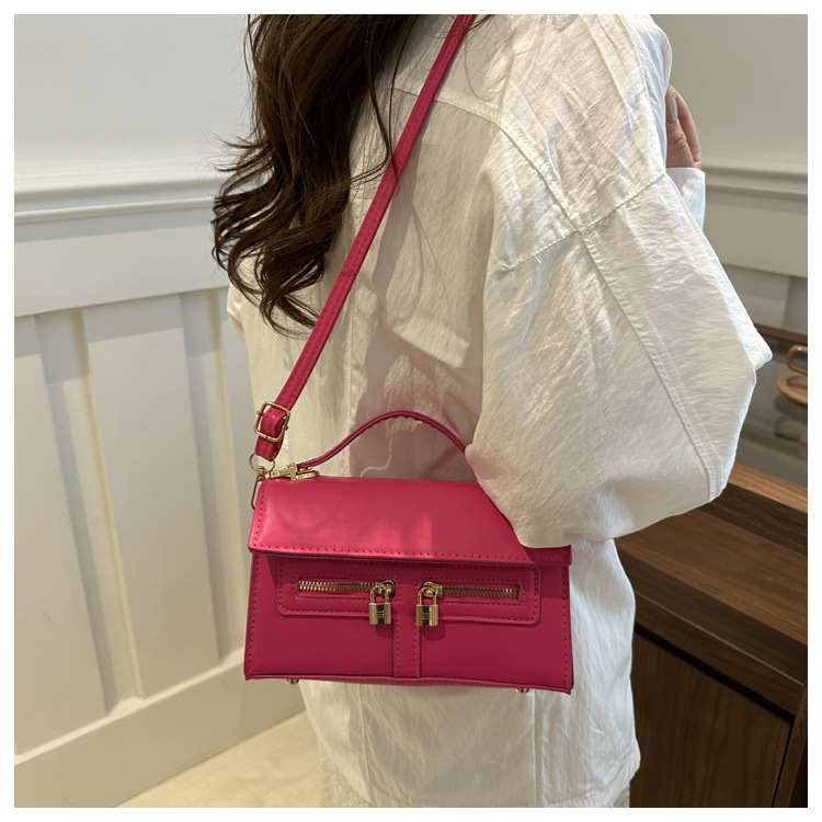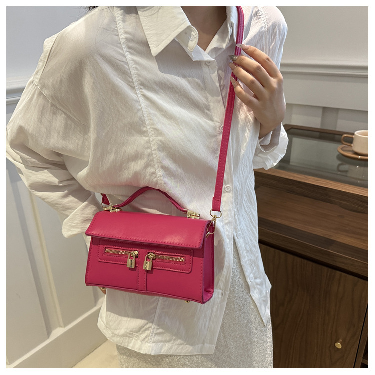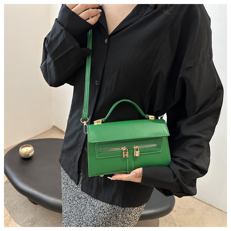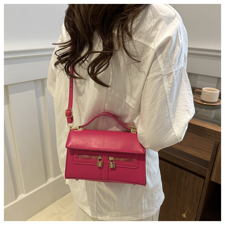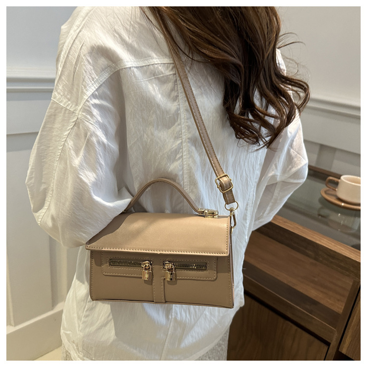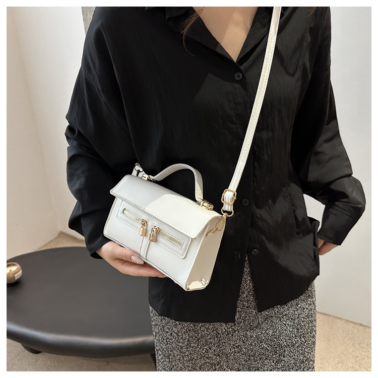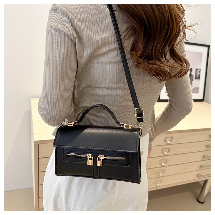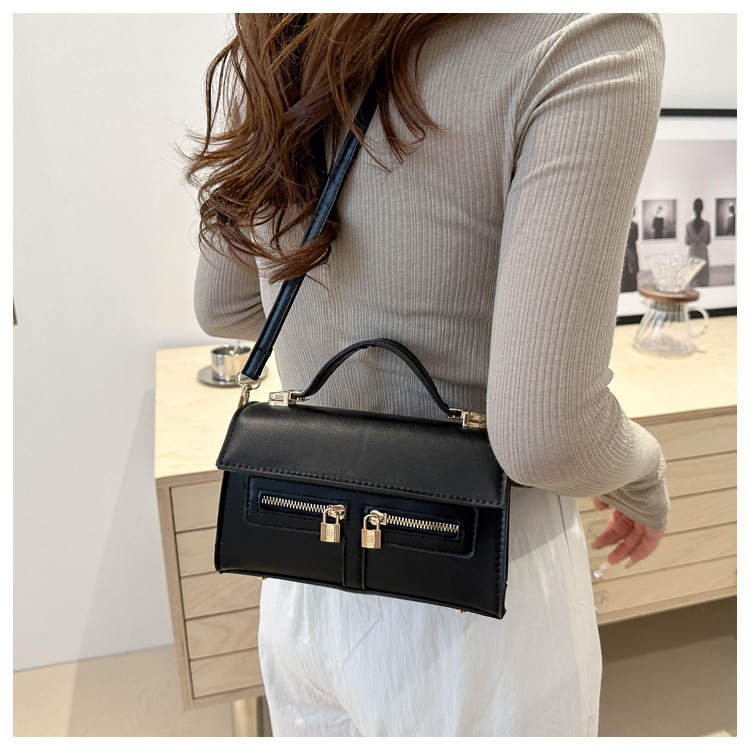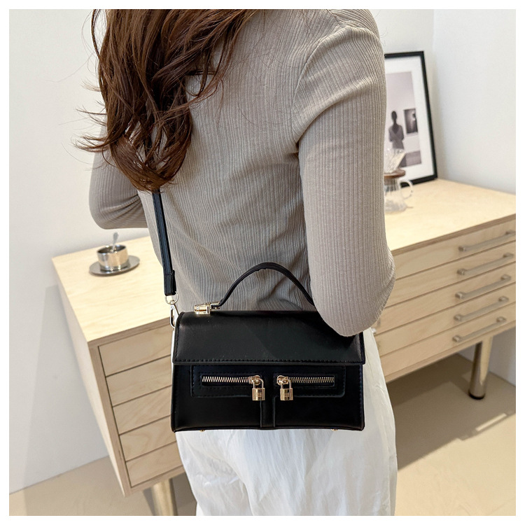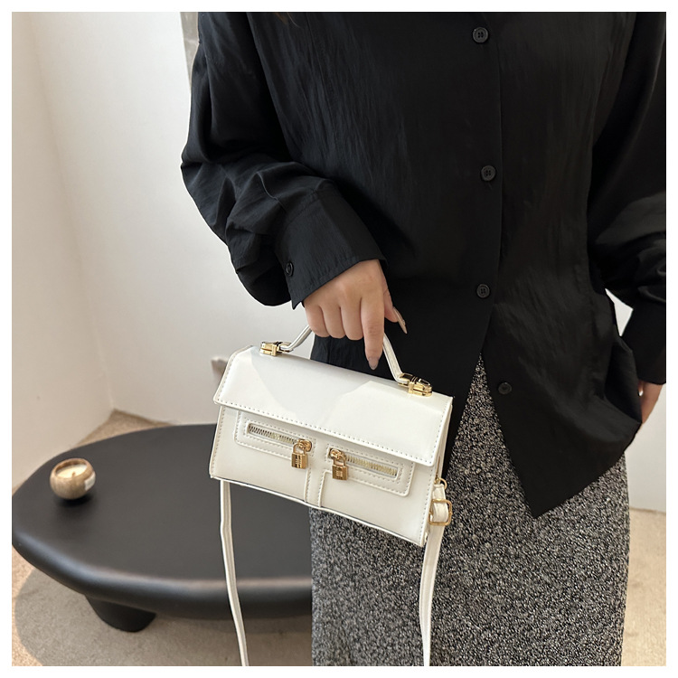 2024 new casual and fashionable double zipper design, personalized and simple single shoulder crossbody temperament, portable small square bag