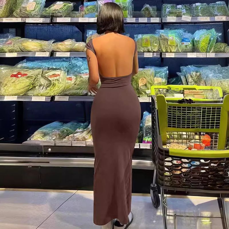 2024 women's sexy backless slim fit waist bag and buttocks gathering long dress