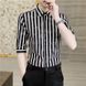 2024 Summer Trendy Striped Woodpecker Ice Silk 3/4 Sleeve Shirt Men's Printed Youth 7/4 Mid Sleeve Flower Shirt