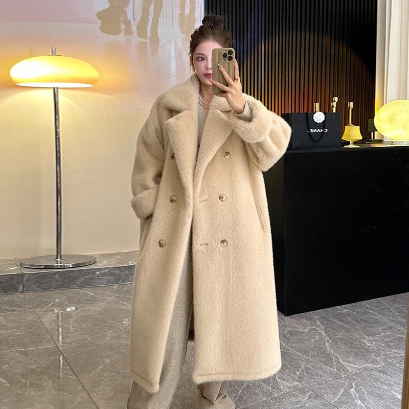 2025 Autumn Winter Thickened and Extended Suit Collar Coat Faux Mink Fur Faux Fur Coat Women's Padded Trendy