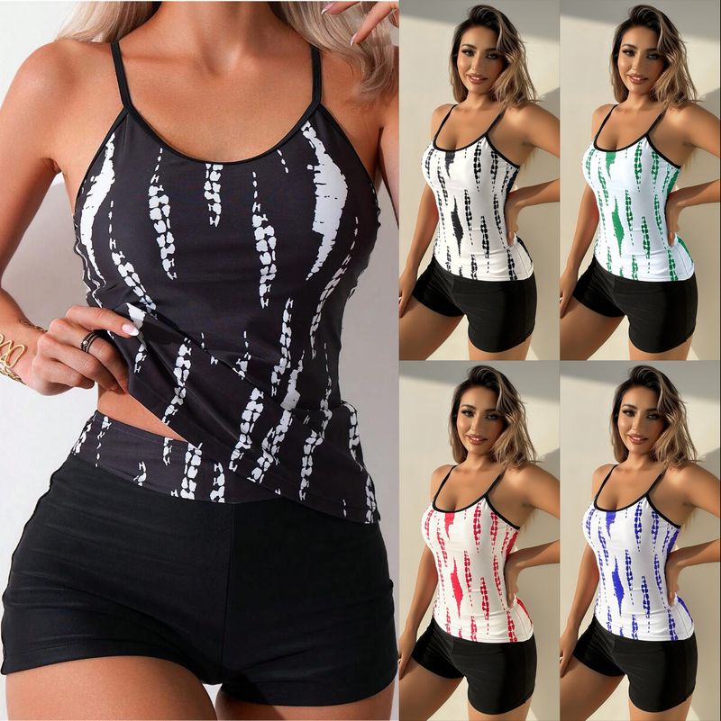 2025 Neue Bademode Zweiteiliger konservativer Tankini-Badeanzug mit hoher Taille und mehreren Farben für Damen
