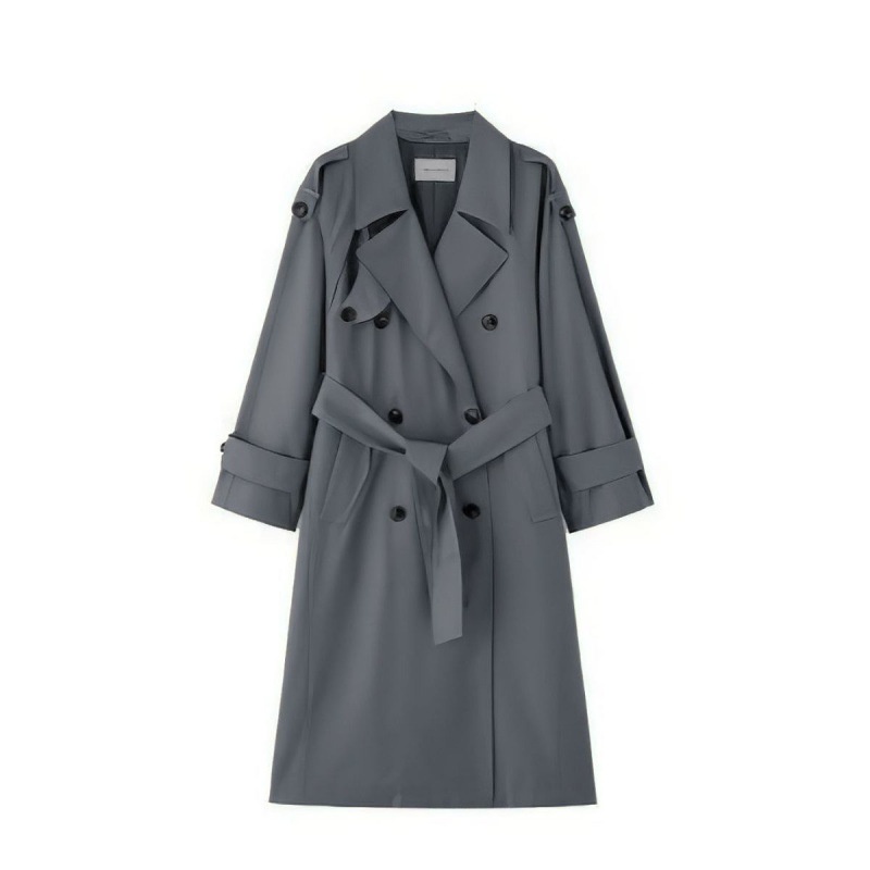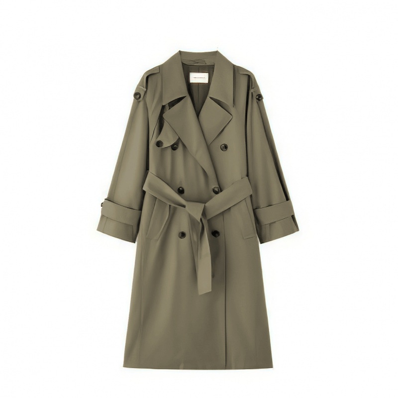 Neuer hochwertiger, kurviger, khakifarbener Mantel im britischen Stil für Frühling/Herbst 2025 – verlängerter, lässig-eleganter Mantel.
