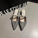 2025 Summer New Fashion Pearl Strap Versatile Daily Simple Style Square Heel Pointed Toe Mules