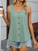 2025 Summer New Round Neck Sleeveless Solid Color Strap Fashion Casual Button Hollow Out Vest
