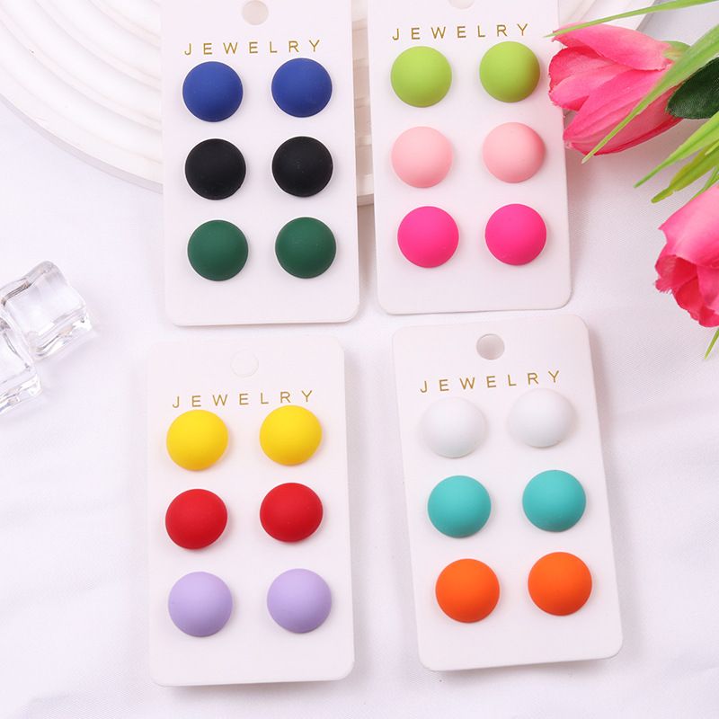 3 Pairs Colorful Earrings Set Three-Dimensional Small Round Beads Acrylic Stud Earrings fashion Summer Round Eardrop Ear Jewelry Female