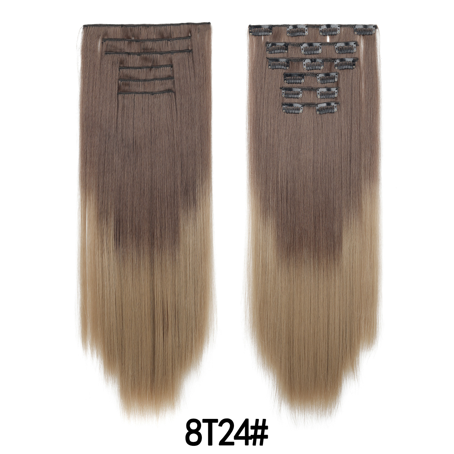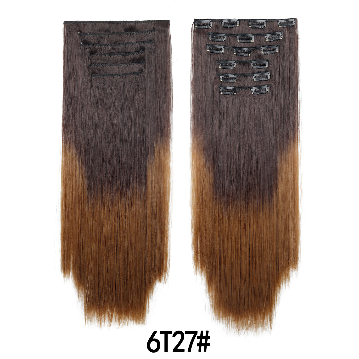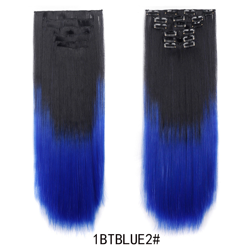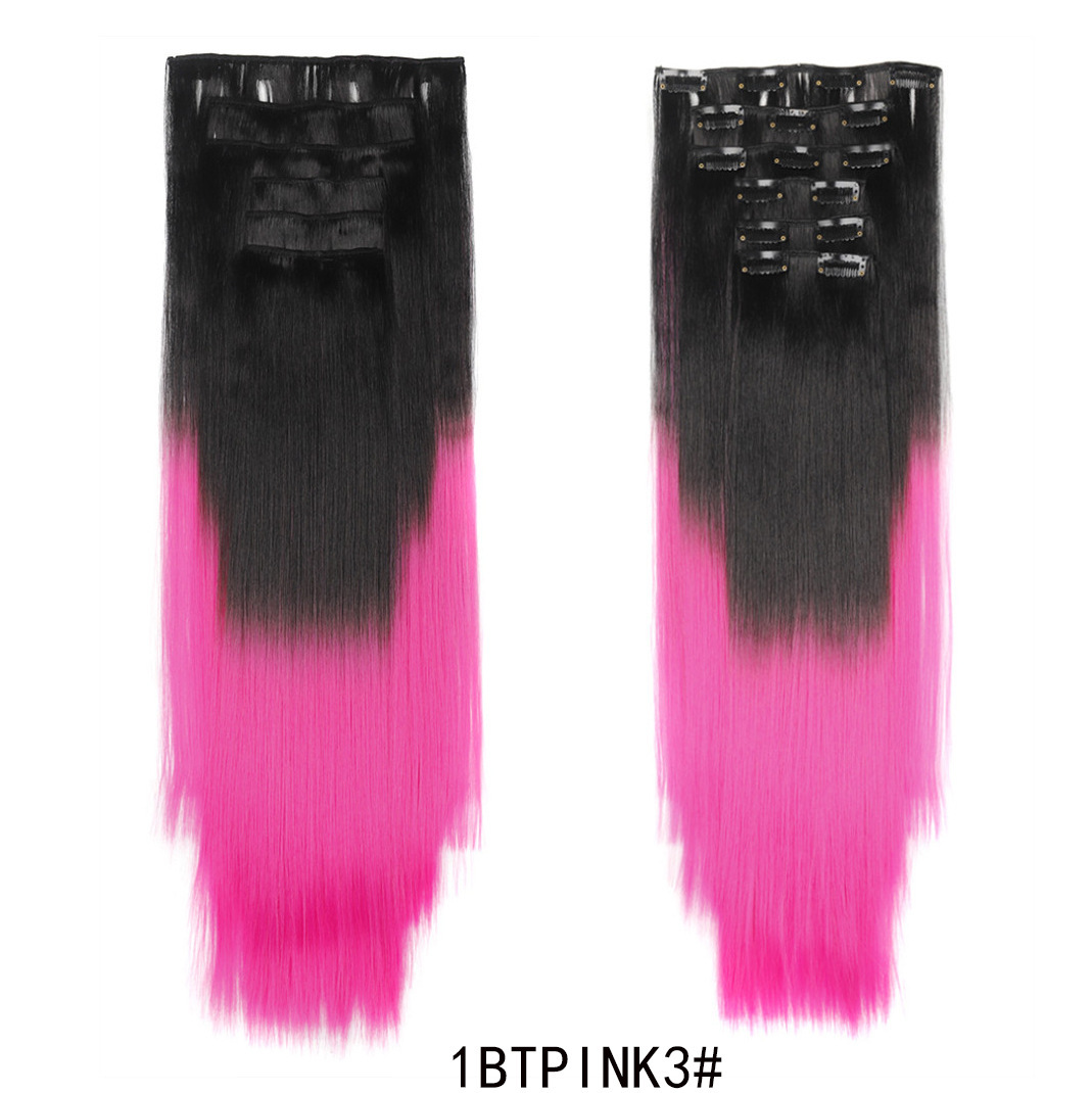 Product Name: European and American Color Gradient Hair Extensions 16 Clips Hair 6-Piece Set Clip Hair Wig Set Straight