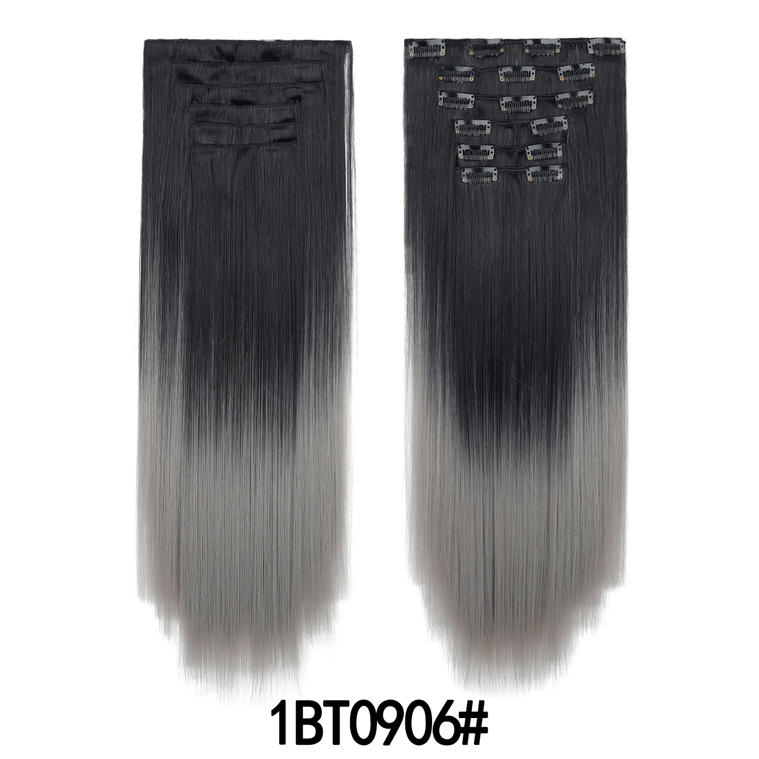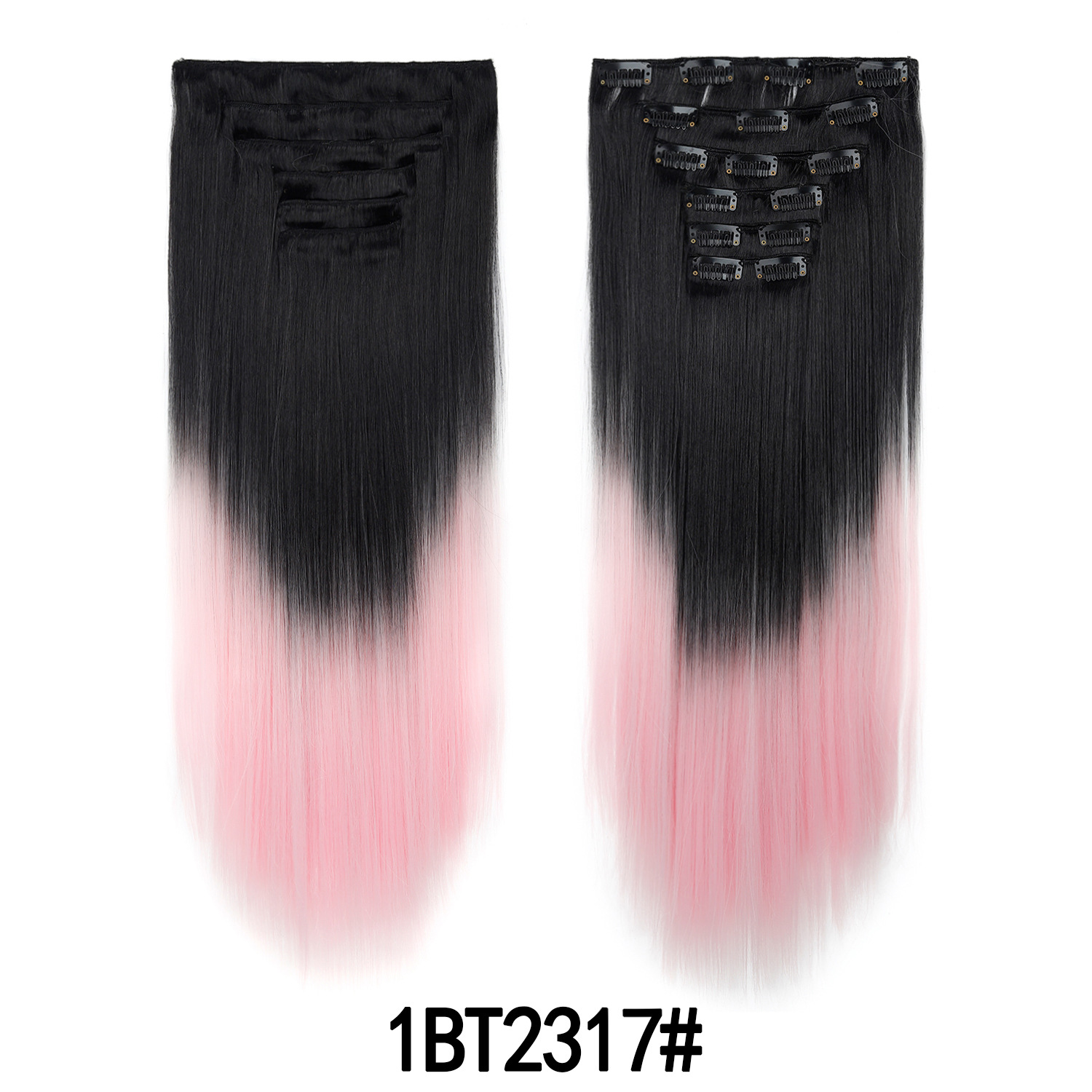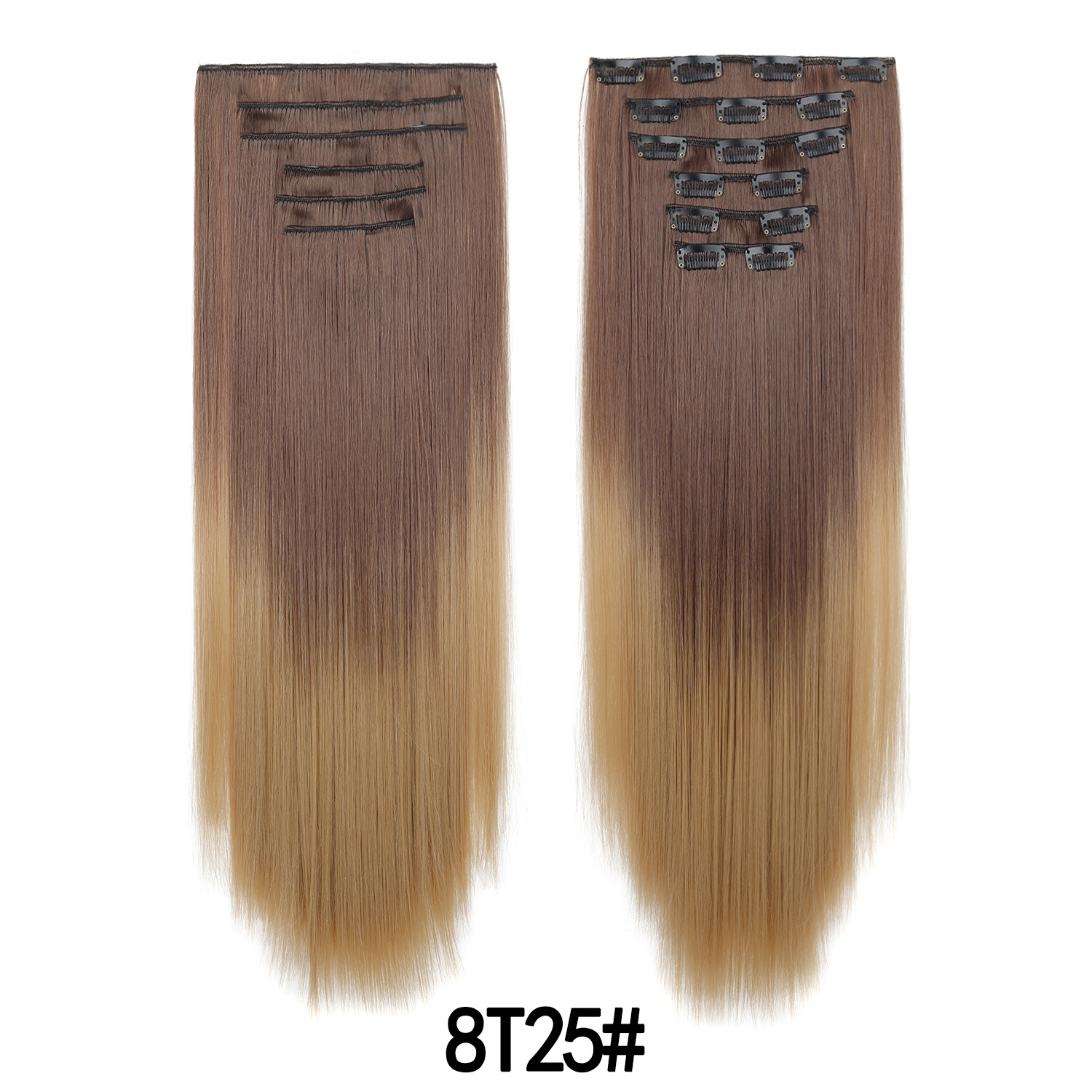 Product Name: European and American Color Gradient Hair Extensions 16 Clips Hair 6-Piece Set Clip Hair Wig Set Straight