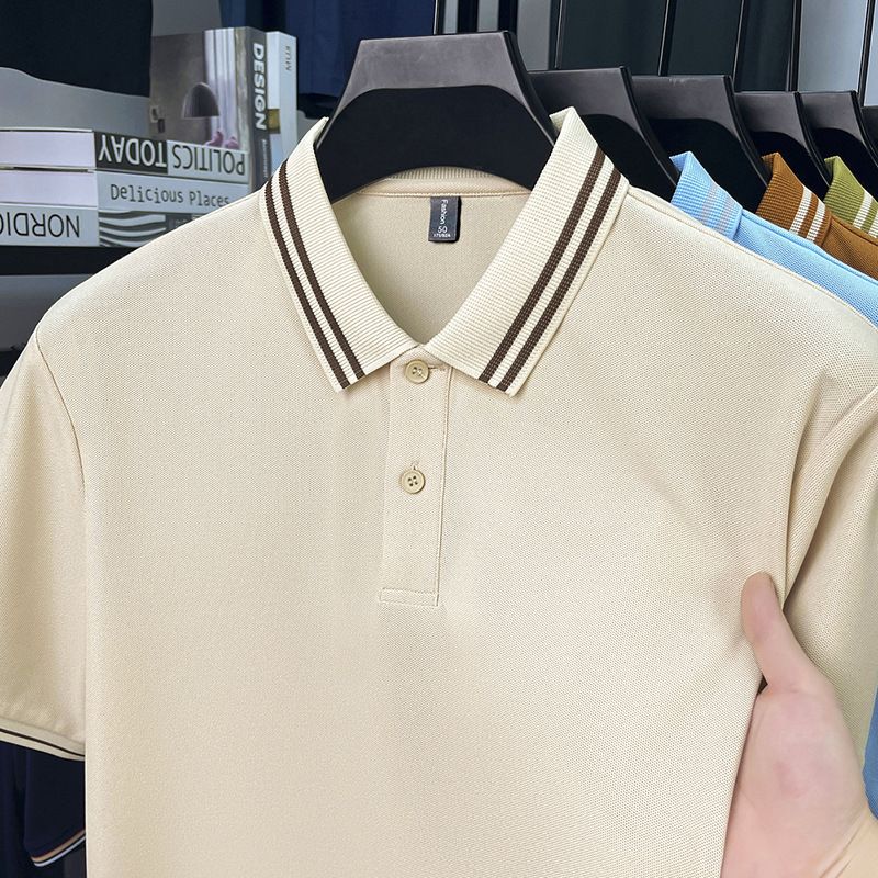 7A Antibacterial Snowflake Six Beads Men's Moisture-Wicking UV-Resistant Solid Color Short Sleeve Polo Shirt