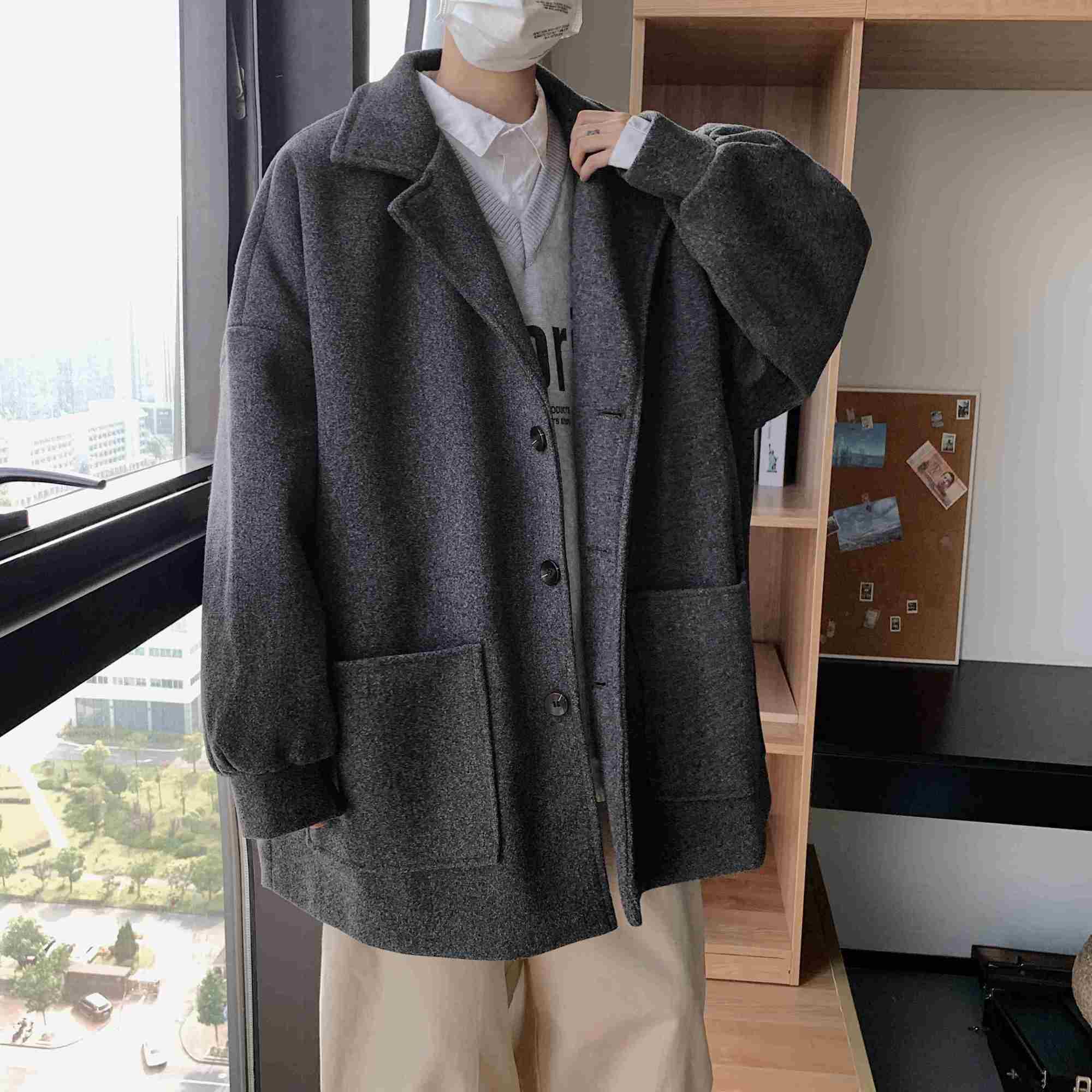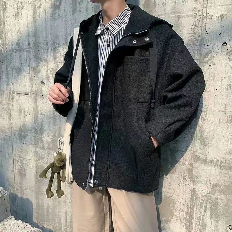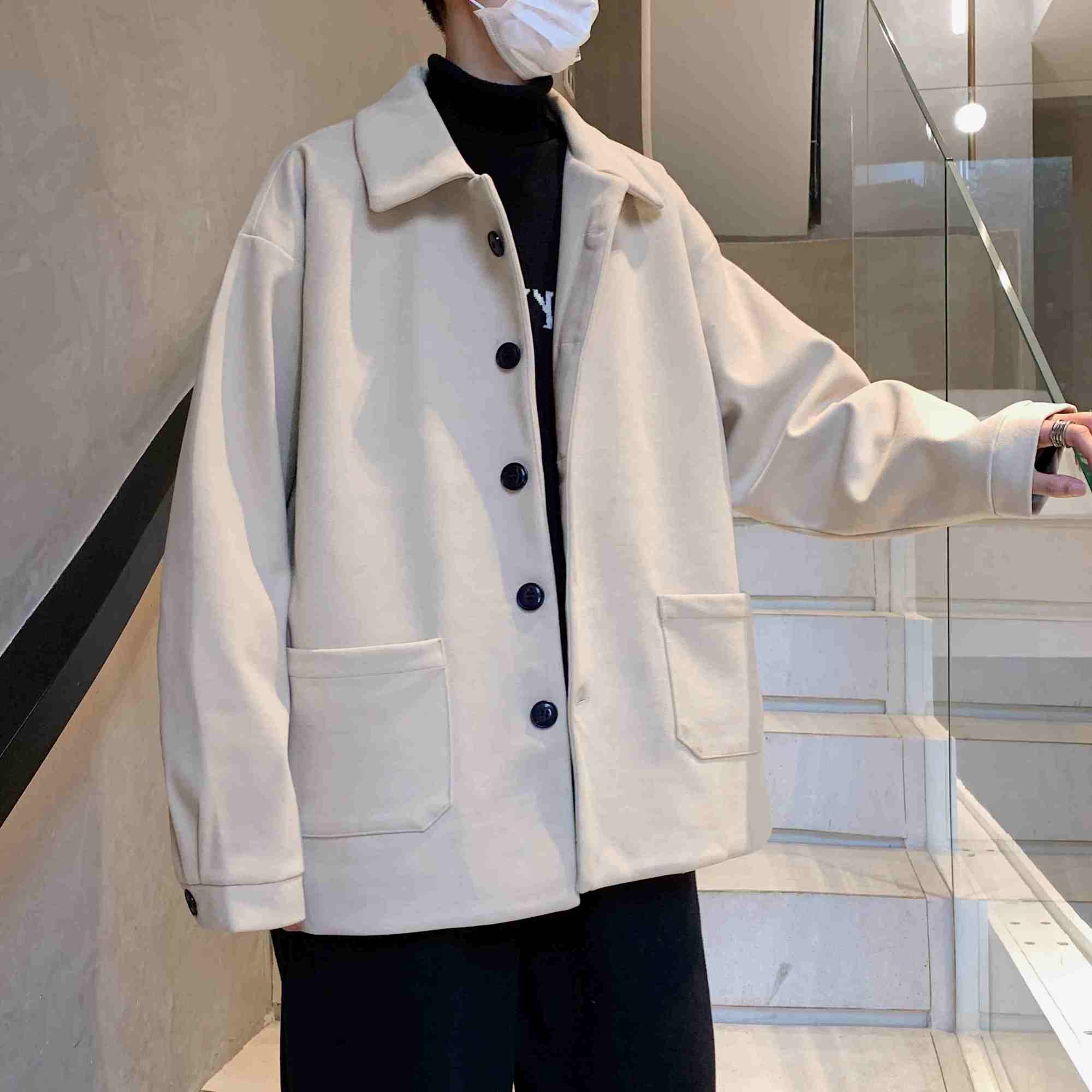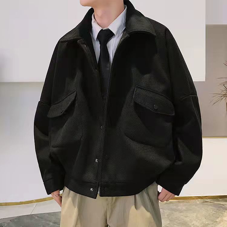 【 Quick Refund 】 Woolen jacket for men's ins autumn and winter youth jacket for men's solid color workwear, student Korean loose fitting jacket