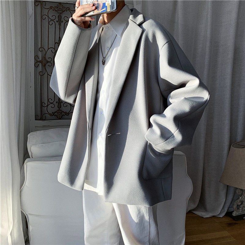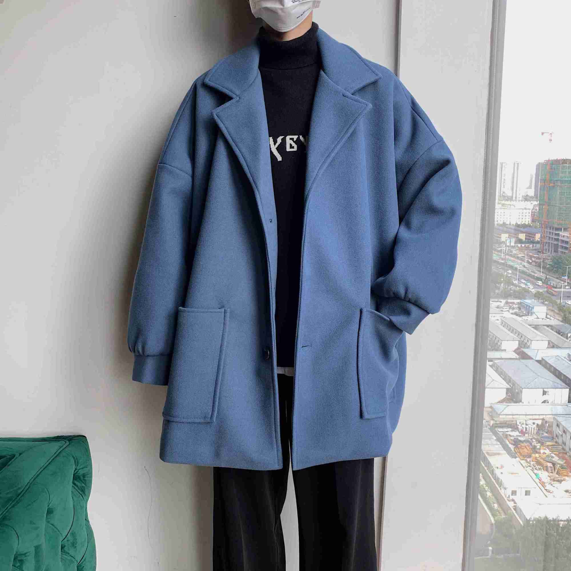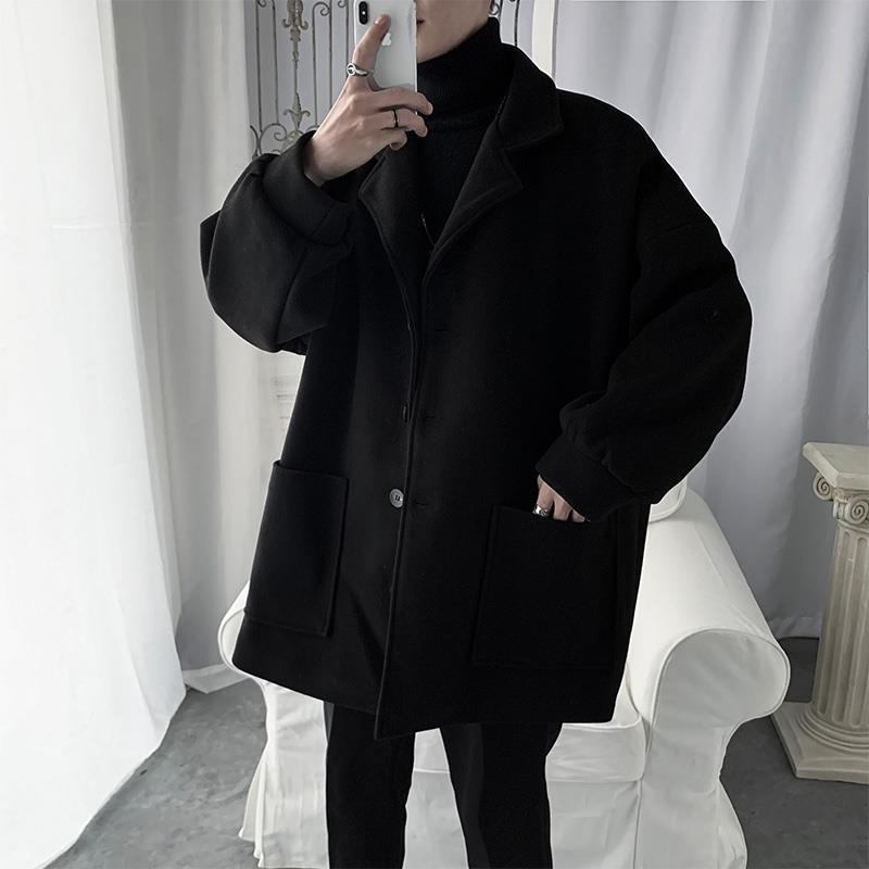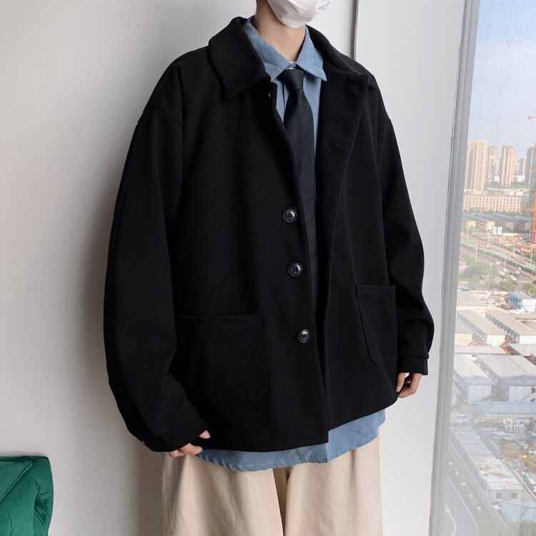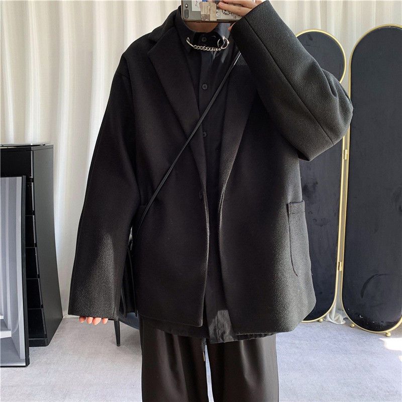 【 Quick Refund 】 Woolen jacket for men's ins autumn and winter youth jacket for men's solid color workwear, student Korean loose fitting jacket