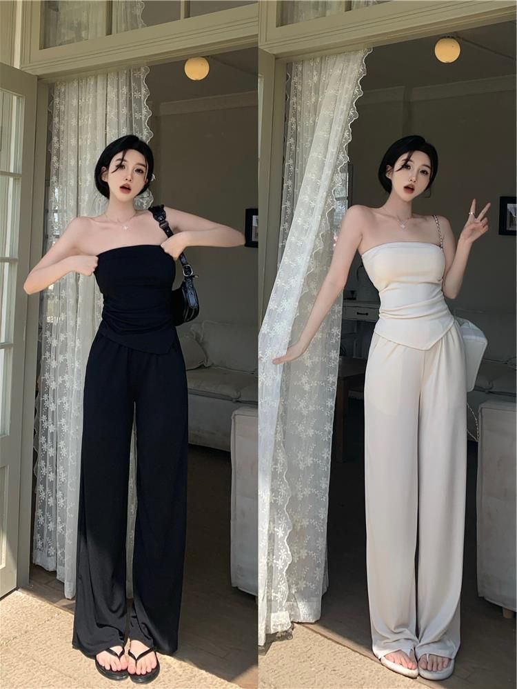 Spicy Girl Tube Top Set Summer Sexy White Floor-Length Pants High Waist Slim Fit Draped Wide-Leg Pants Two-Piece Set