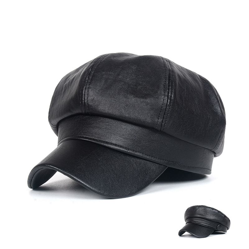 Beret Hat Autumn Winter PU Octagonal Hat Fashion Versatile Leather Hat British Style Trendy Duckbill Hat Men Winter Warm