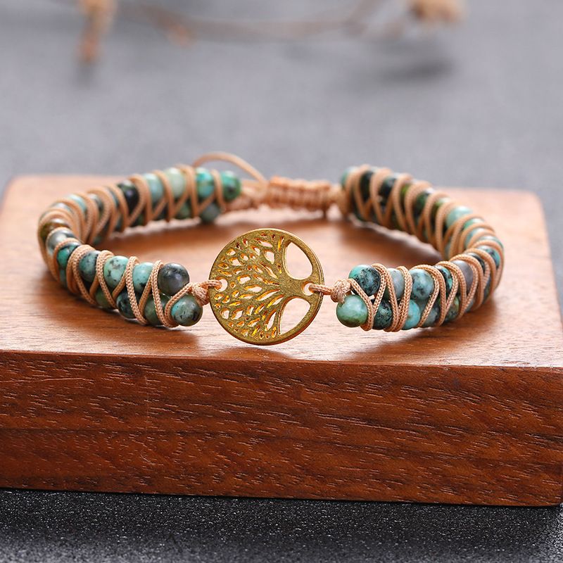 [Material] 4mm natural stone + alloy tree of life + jade thread