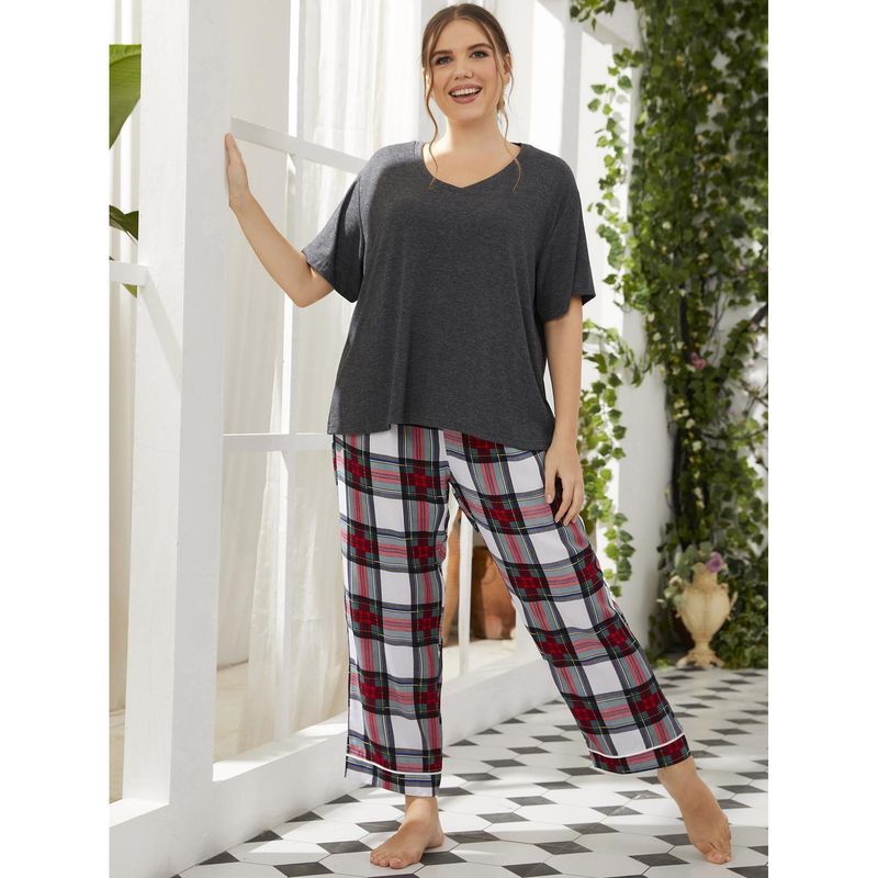 Baumwollpyjama für Damen in Übergröße für mollige Frauen, kurzärmeliges Homewear-Set für Frühling und Sommer