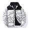 Übergroße Pufferjacke für Unisex – Streetwear-Mantel mit Stehkragen und Farbblock-Buchstabendruck (Thermo-Polyesterfüllung, wintertaugliche Unisex-Mode)