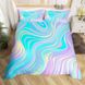 Teal Lila Tie Dye Bettbezug Kinderbett,Abstrakte geschwungene Linien Quiltbezug,Farbverlauf Bettwäsche Set,Ombre Bett Set mit 2 Kissenbezügen Schlafzimmer Dekor