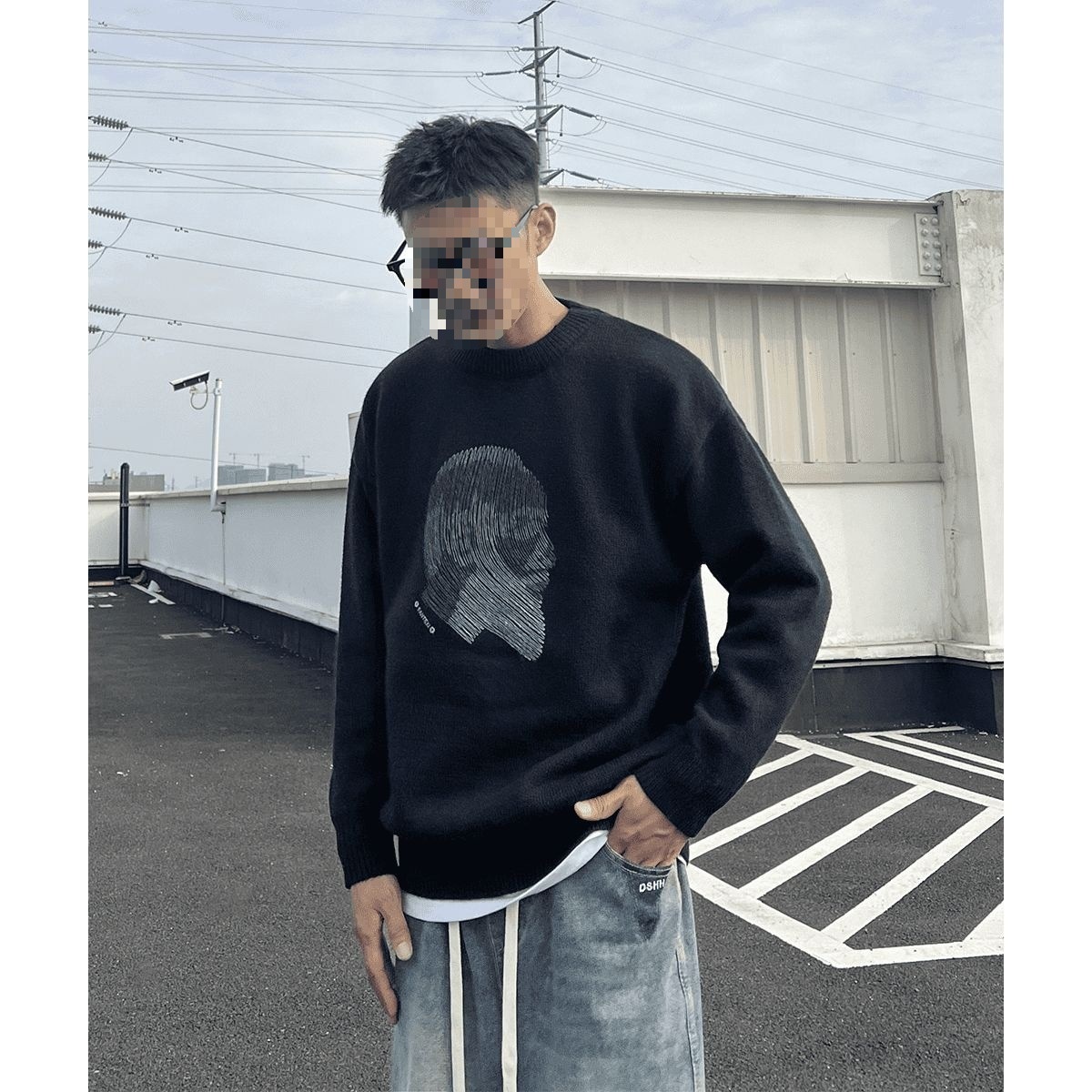 Herren-Pullover mit Rundhalsausschnitt, Herbst/Winter-Trendmarke, stylischer, lässiger und vielseitiger Strickpullover in Schwarz