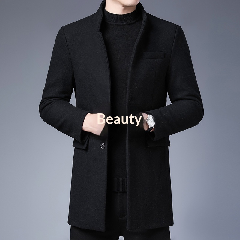 Boy Boy Boy Woll-Trenchcoat im koreanischen Stil, schmale Passform, Herbst/Winter 2025, trendiger, mittellanger Trenchcoat für Herren mittleren Alters, Wolljacke