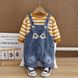 Boys' autumn striped long sleeved set 2024 autumn new item baby three-dimensional cartoon denim overalls two-piece set