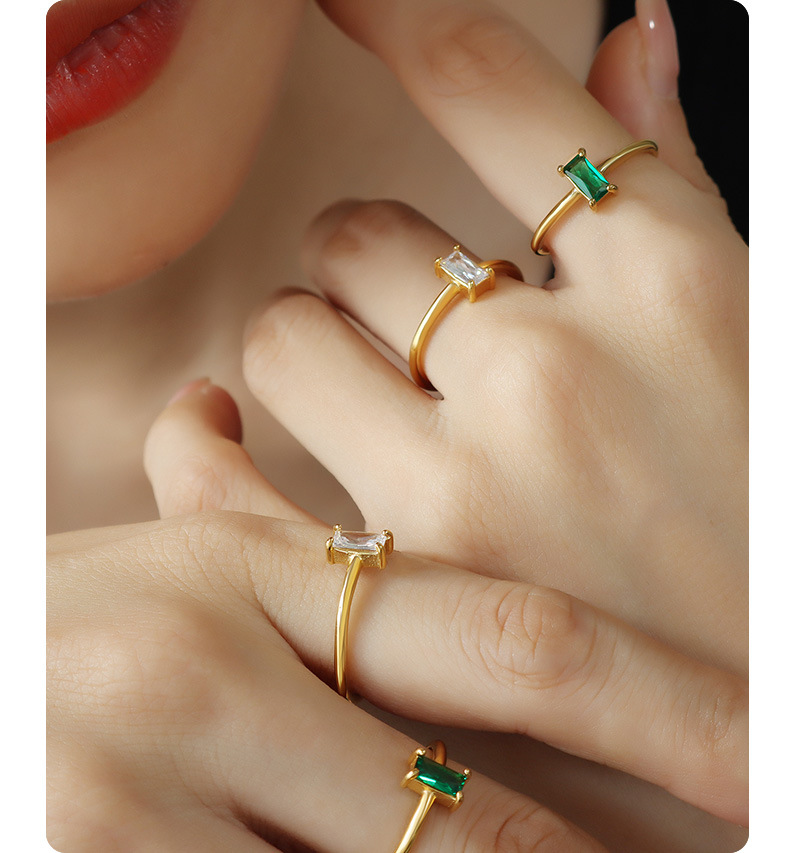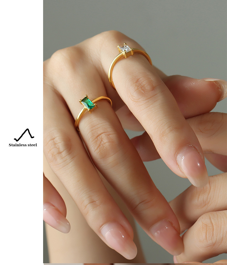 Einfaches und kompaktes schlichtes Ringarmband im koreanischen Stil mit eingelegten Blöcken, weiß-grüner Zirkonring, Nischendesign, lichtechtes Armband