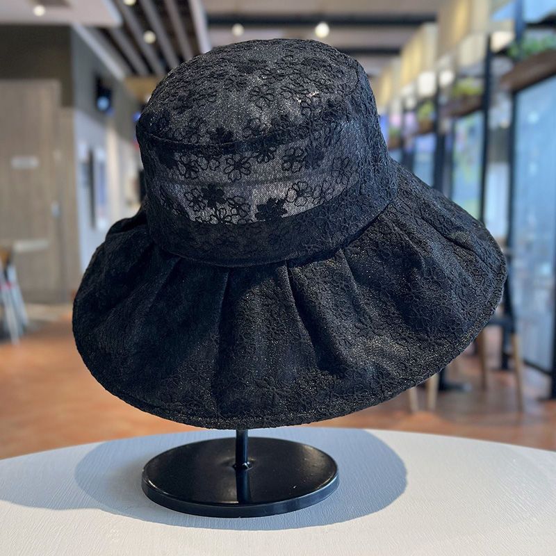 Bucket Hat mit Spitze und Blumenmuster für Damen, Sommer, Traufe, UV-Schutz, Sonnenhut, Reise, faltbar
