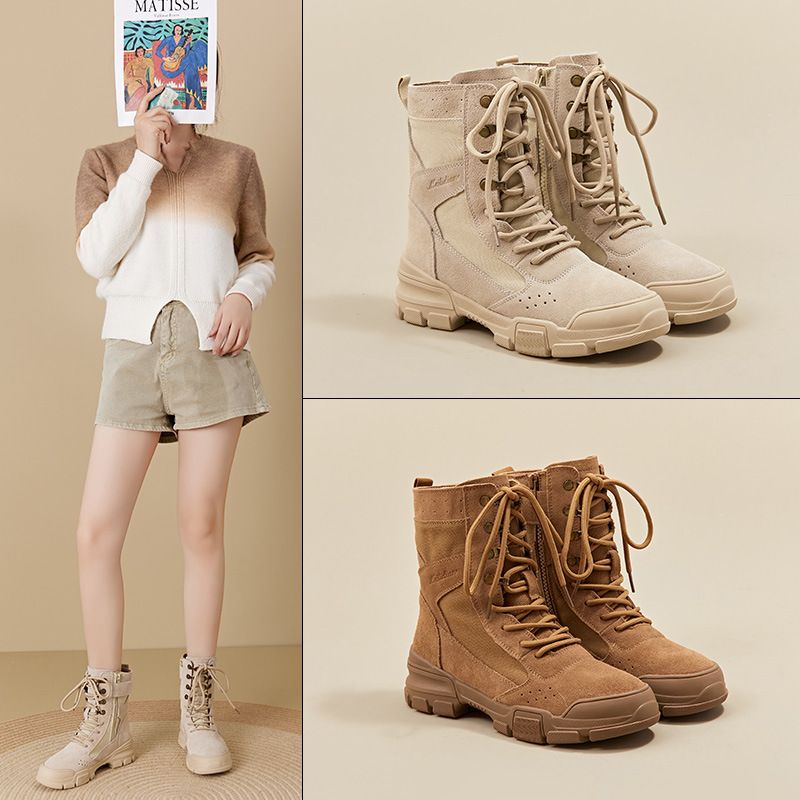 Canvas Martin für Frauen 2025 Neue Sommer Outdoor Echtes Leder Atmungsaktive Wanderschuhe Wüste Dicke Sohle Kurze Stiefel