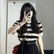 Schönes Strickhemd im Hong Kong-Stil mit Streifen, schulterlanges Ärmel-T-Shirt, schlankmachendes Sommerdesign für Damen, Nische