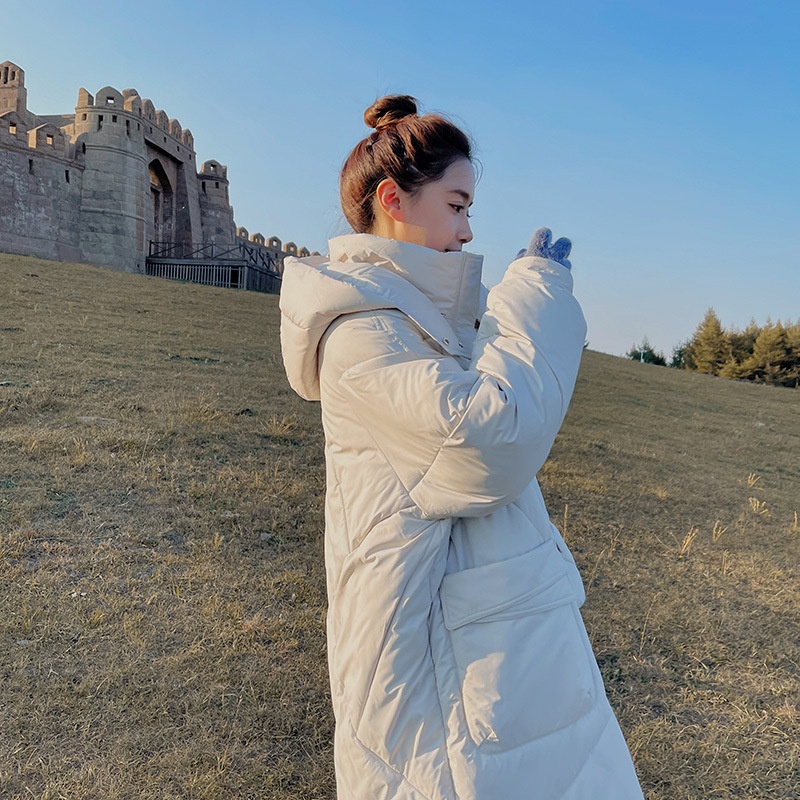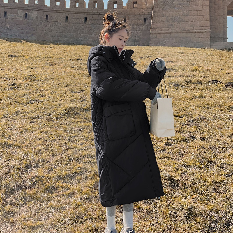 ChicShe Winter 2024 Neue Mode Lockere Plus Size Kapuzen-Daunenjacke aus Baumwolle für Damen, mittellang, knielang, dick gefüttert