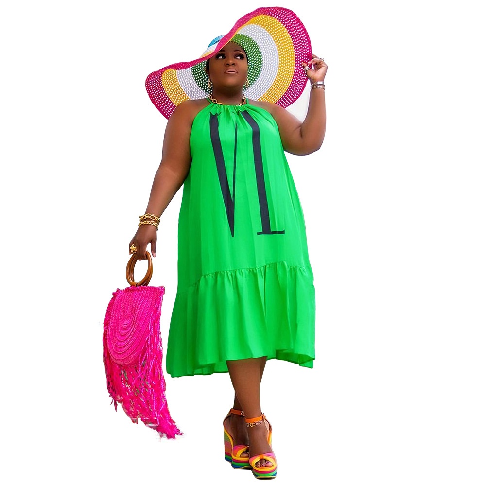 ChicShe – Europäische und amerikanische Plus-Size-Damenmode, lässig, einfarbig, mit auffälligem Print, Club-Stil, lockere Träger, Rüschen