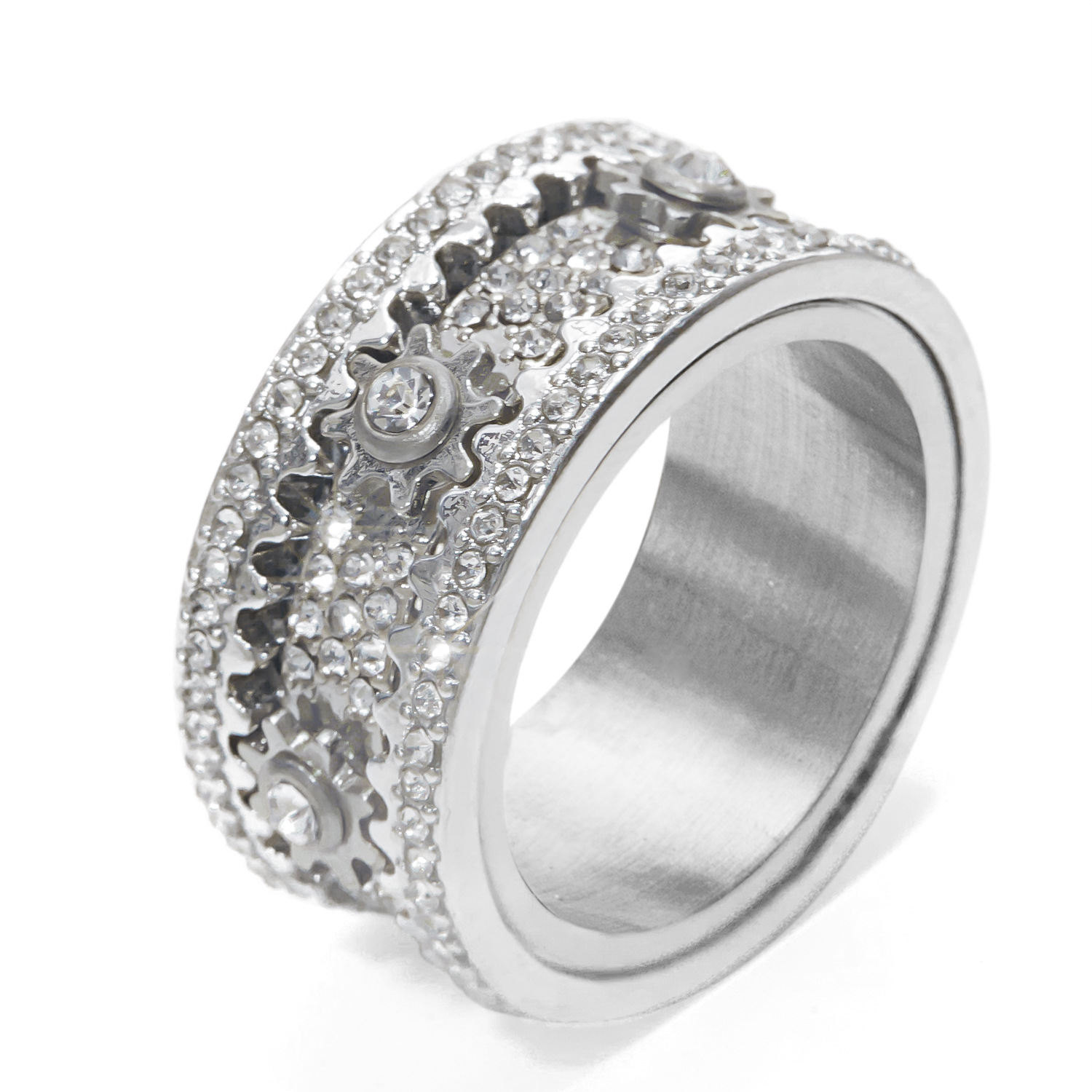 Tiktok The same CNC full diamond inlaid full star gear can rotate the ring lovers rotating mechanical decompression ring