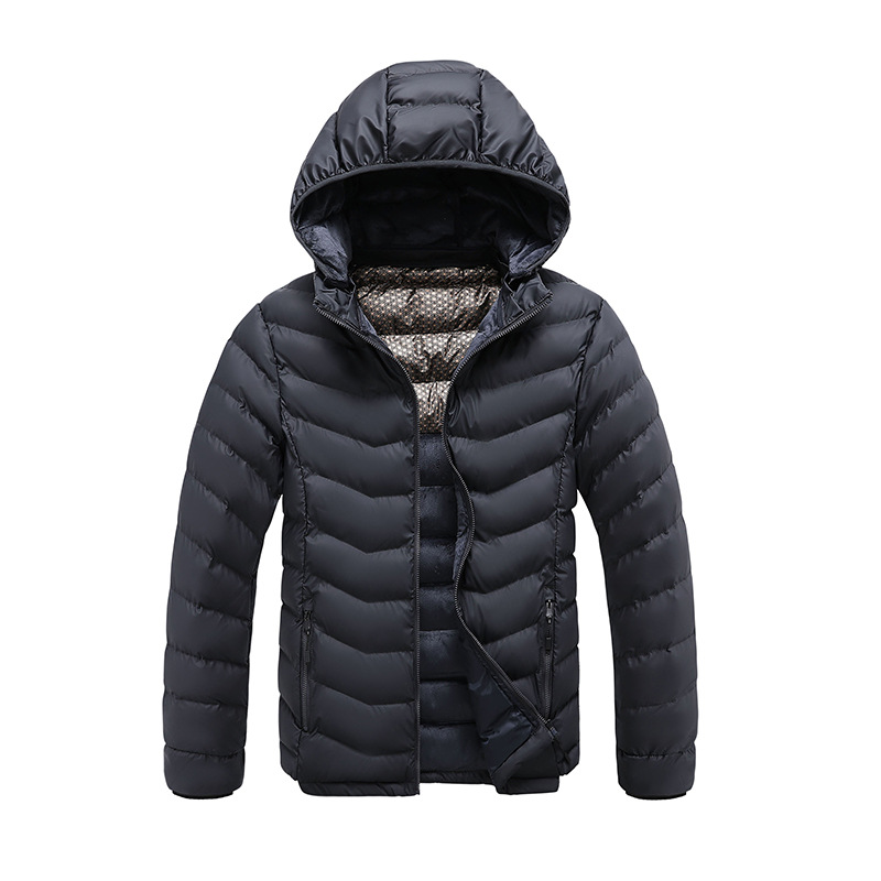 Baumwollgefütterte Herren-Graphen-Jacke in Slim-Fit-Passform mit abnehmbarer Kappe und dicker Kapuze