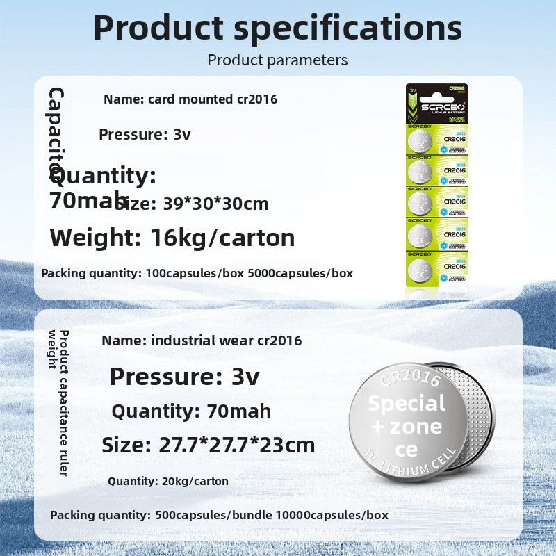 CR2016 Großhandel Hochleistungs-Autoschlüsselanhänger Lithium-Spielzeug-Runddrehknopfbatterie 2016