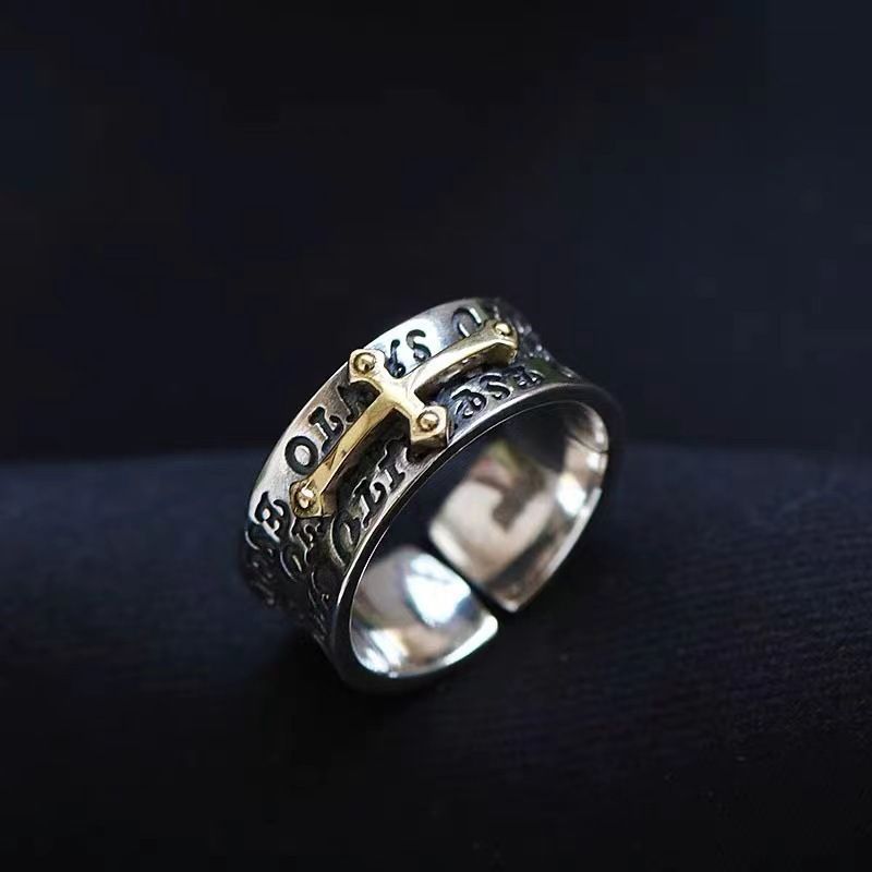 DAMAI American Style Cross Ring for Men Ins Niche Personality Fashion Trend Open Ring