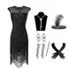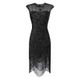 Damen Bankett Abendkleid 1920 Pailletten Fransenkleid Rundhals Gatsby Set