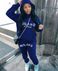 Damen-Fleece-Kapuzenpullover, zweiteilig, Kapuzenpullover, lässig, bedruckt, Sport-Set
