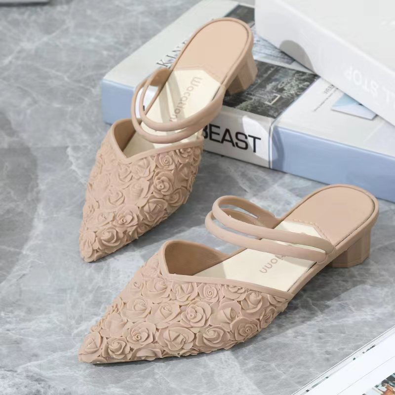 Damen On Mid Chunky Block Heels Sandalen Schuhe Low Heel Sliders Sandalen Externer Verschleiß Slip Bequem