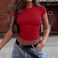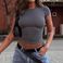 Damenbekleidung Einfarbig Rundhals Basic Kurzarm Kurzes T-Shirt