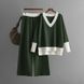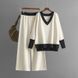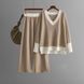 Damenbekleidung Herbst und Winter neuer V-Ausschnitt Kontrastfarbe Strickpullover lockere Hose mit weitem Bein zweiteiliger Anzug