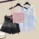 Damenbekleidung in Übergröße, Sommerkleidung für Damen, ein komplettes Set aus neuem Sonnenschutzhemd, schmalen Hosenträgern, Jeansshorts, dreiteiligem Set