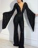 Damenbekleidung Pailletten Sexy Fledermausärmel Top Jumpsuit Abendkleid Neu