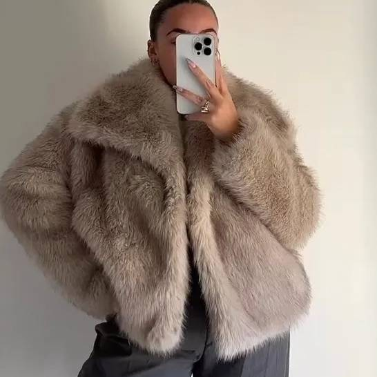Damenbekleidung Pelz Großer Revers Pelzmantel Kurzer modischer Fuchspelzmantel Flauschiger Plüsch Damenbekleidung