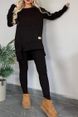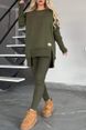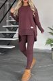 Damenbekleidung Rundhalsausschnitt Lässiger einfarbiger Anzug Geteilter Saum Langarm-Tunika-Set – Minimalistisches Rundhals-Freizeitoutfit für Herbst und Winter