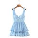 Damenbekleidung Sommer dreifarbiges dreilagiges buntes Seidenchiffonkleid plissierter Schnürer kurzer Rock_voghion.com