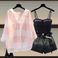 Damenbekleidung Sommer-Outfit Komplettset Sonnenschutzhemd im neuen Stil Große Größe Schlanke Hosenträger Jeansshorts Dreiteiliges Set