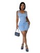 Damenbekleidung Super elastischer verdrehter Streifen-Jumpsuit Arbeitstasche Kurzer Rock-Set_voghion.com